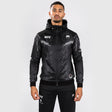 Der UFC Adrenaline by Venum Authentic Fight Night Men's Walkout Hoodie verfügt über zwei Reißverschlusstaschen und eine netzgefütterte Kapuze mit verstellbaren Kordelzügen. Die Handgelenke und die Innenseite der Arme sind aus hochwertigem Stretch-Stoff gefertigt, damit die Kämpfer den Hoodie ausziehen können, ohne die Handschuhe ausziehen zu müssen.