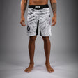 Entwickelt für Mobilität und Komfort, bietet diese lang geschnittene Shorts in Weiß thermo-geklemmte Seitenschlitze für mehr Bewegungsfreiheit während des Stehens und am Boden. Der Stoff ist leicht, strapazierfähig und flexibel, während der elastische Bund einen sicheren Sitz gewährleistet - die ideale Shorts für Kampfsportarten.