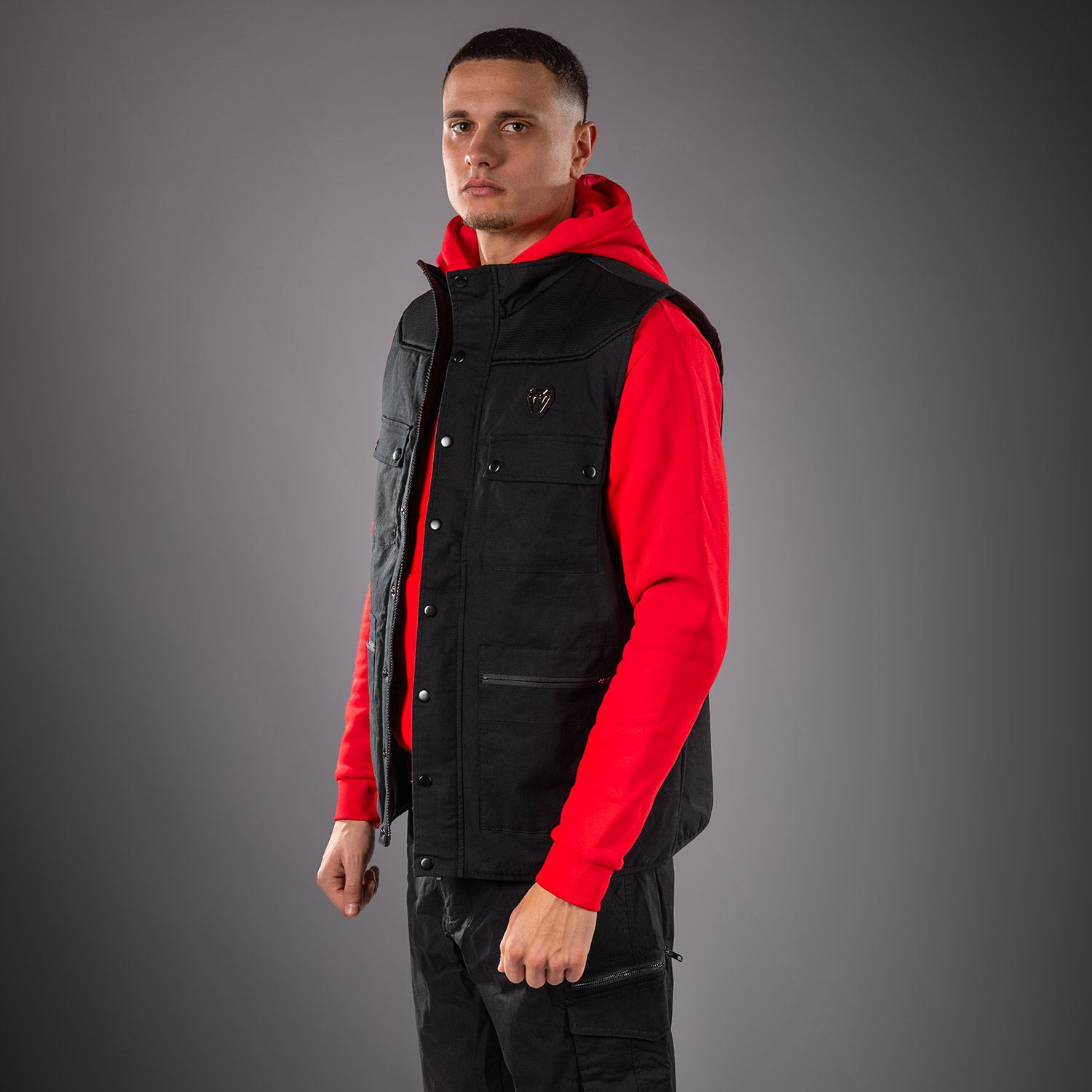 Die Venum Altitude Jacke ist für das urbane Leben in Bewegung gemacht. Diese ärmellose Herrenweste eignet sich ideal zum Überziehen über ein T‑Shirt oder Sweatshirt an kühleren Tagen. Cargo-Taschen und Knopfdetails verleihen einen dezenten Military-Look, während der Stehkragen vor Wind schützt.