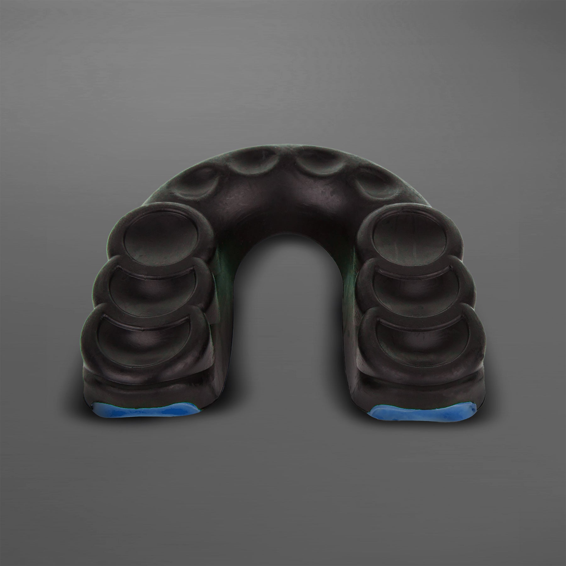 Der untere Gummi-Rahmen, absorbiert den Schock, wenn du beißt und diffundiert die Kraft in Richtung deiner stärksten Zähne.