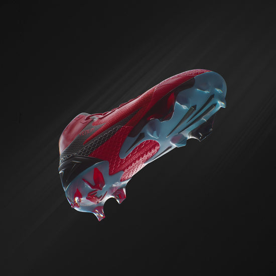 Das leichte, aerodynamische Mesh-Obermaterial bietet optimale Performance und wurde unter realen Bedingungen getestet. Ein textiler Schaft sorgt für Halt und Komfort im Knöchelbereich. Das geformte TPU an den Stollen gewährleistet hohe Stabilität, während ihre breite Anordnung für überlegene Traktion sorgt. Der Schuh bietet eine dynamische Flexibilität, ideal für schnelle Richtungswechsel und explosive Aktionen. PU-Verstärkungen an der Ferse und im Vorfußbereich schützen zuverlässig, wenn das Spiel intensiver wird.