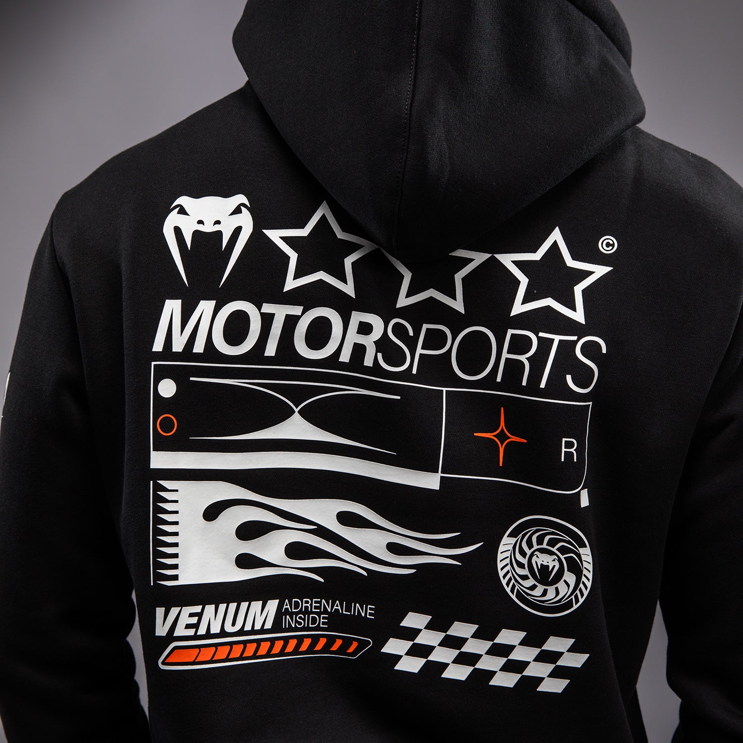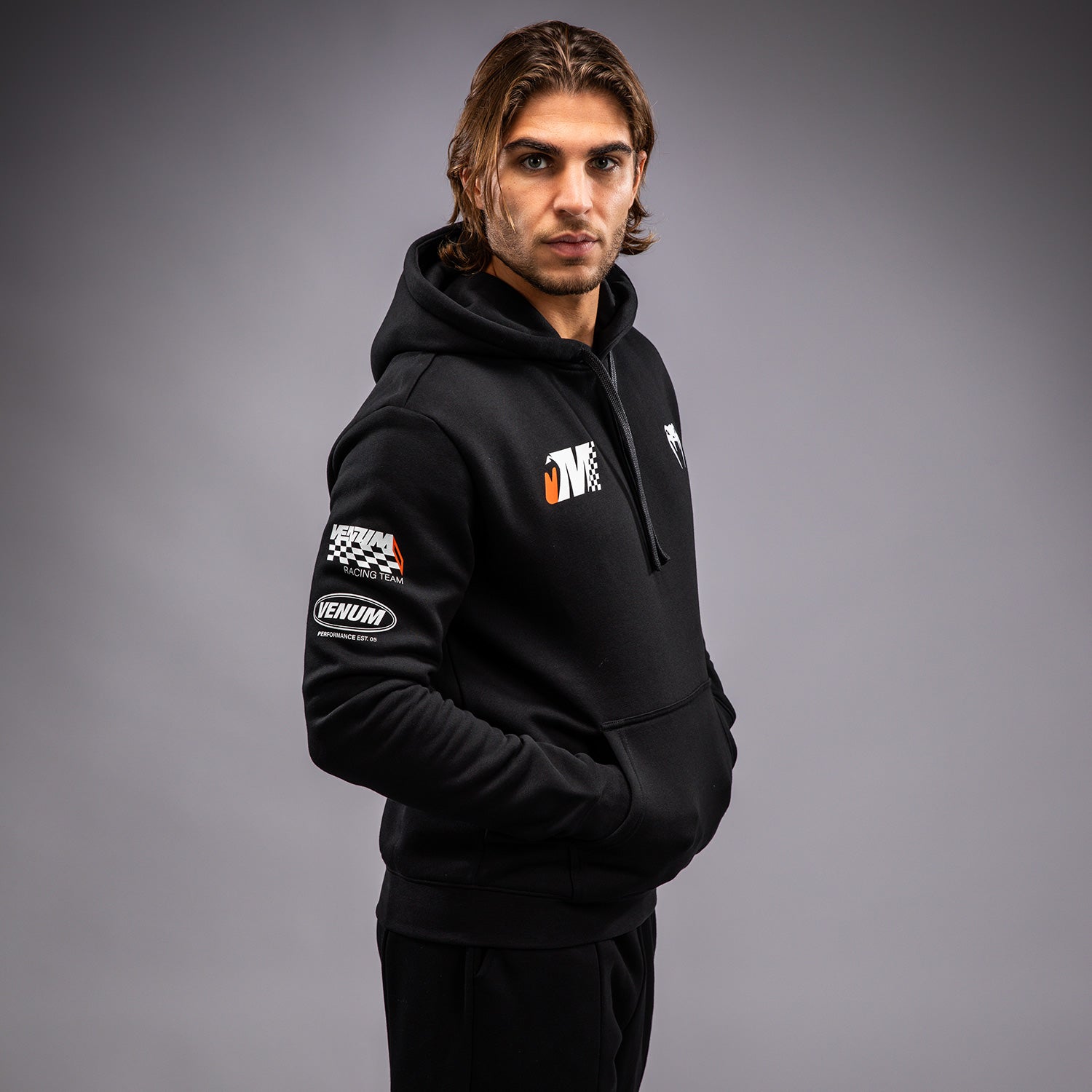 Der Venum Motorsport Hoodie in Tiefschwarz ist ein regulär geschnittenes Pullover mit einer Kängurutasche und einer Kapuze mit Kordelzug. Mit orangefarbenen und weißen gedruckten und gestickten Patches, inspiriert von Venum Motorsports, ist dieser Hoodie bereit für die Rennstrecke!