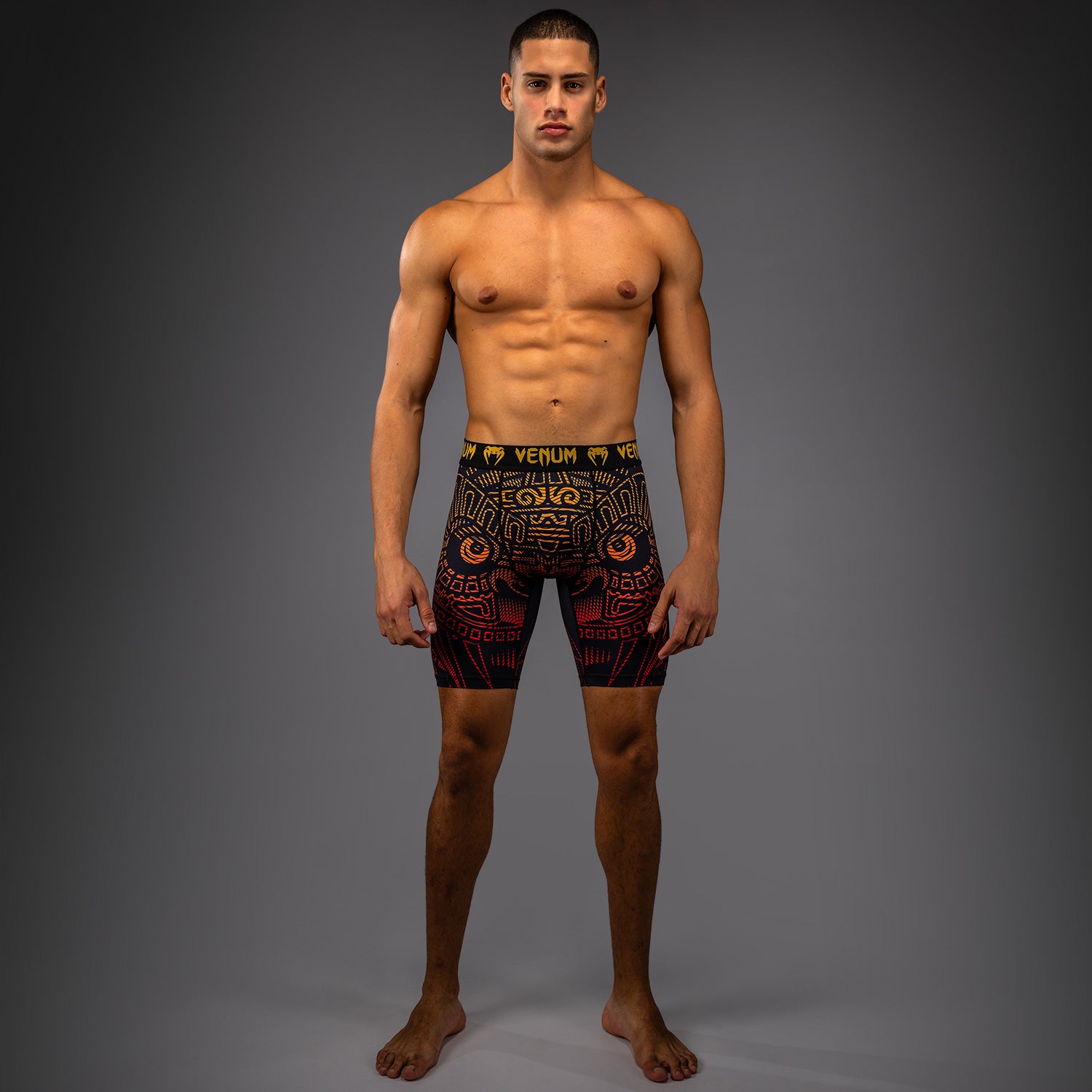 Die Venum Quetzal Fury Vale Tudo Shorts von Venum sind Kompressionsshorts in mittlerer Oberschenkellänge, die für intensives Training konzipiert sind. Das leichte Material sorgt für ein angenehmes "zweite Haut“-Gefühl. Die Kompression unterstützt die Muskelregeneration während und nach dem Training. Ideal für MMA, Boxen oder jedes hochintensive Kampfsporttraining. Kombiniert perfekt mit weiteren Teilen der Quetzal Fury Kollektion für einen einheitlichen Performance-Look.