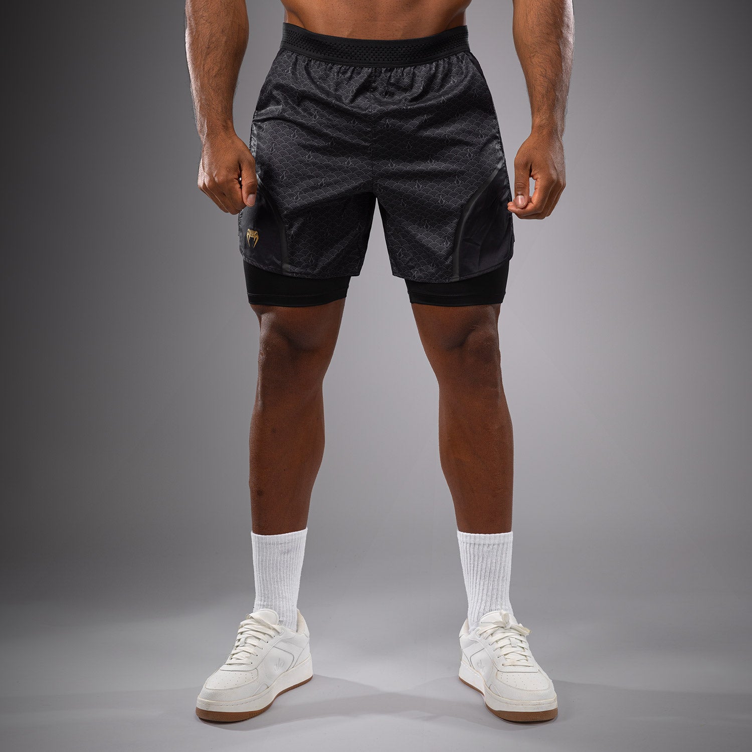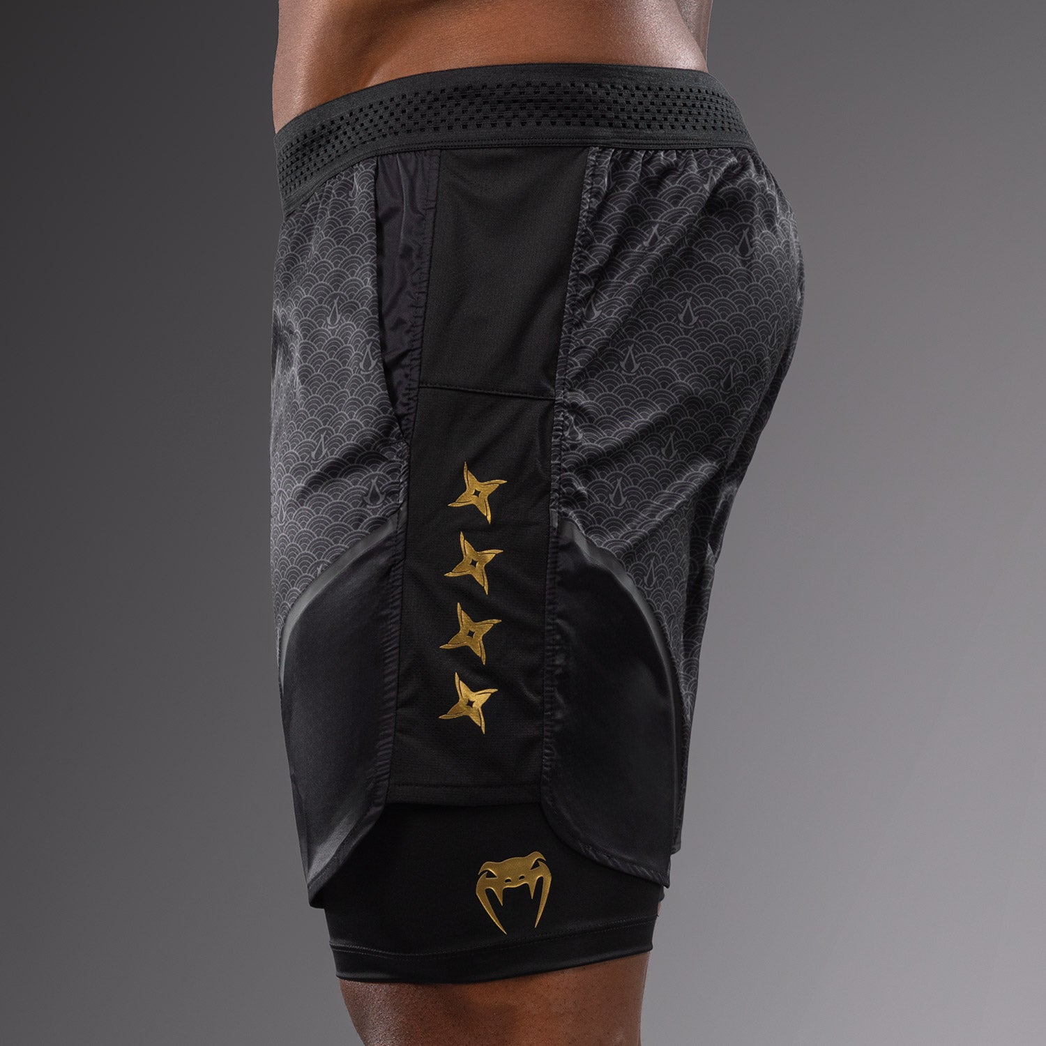 Die Venum x Assassain's Creed: Shadows Men's Training Shorts ist eine vielseitige Performance-Short. Sie verfügt über ein 2-in-1-Design: Die innere Kompressionsshort bietet Halt, während die äußere Schicht aus einem leichten, atmungsaktiven Stoff mit genau dem richtigen Maß an Dehnbarkeit gefertigt ist und so für Bewegungsfreiheit sorgt. An der Seite der Shorts befinden sich das Venum-Logo und vier Nunchaku, eine Ninja-Waffe, in Gold. Ein subtiles Assassin's Creed-Logo-Motiv befindet sich auf der Außenseite der Shorts.