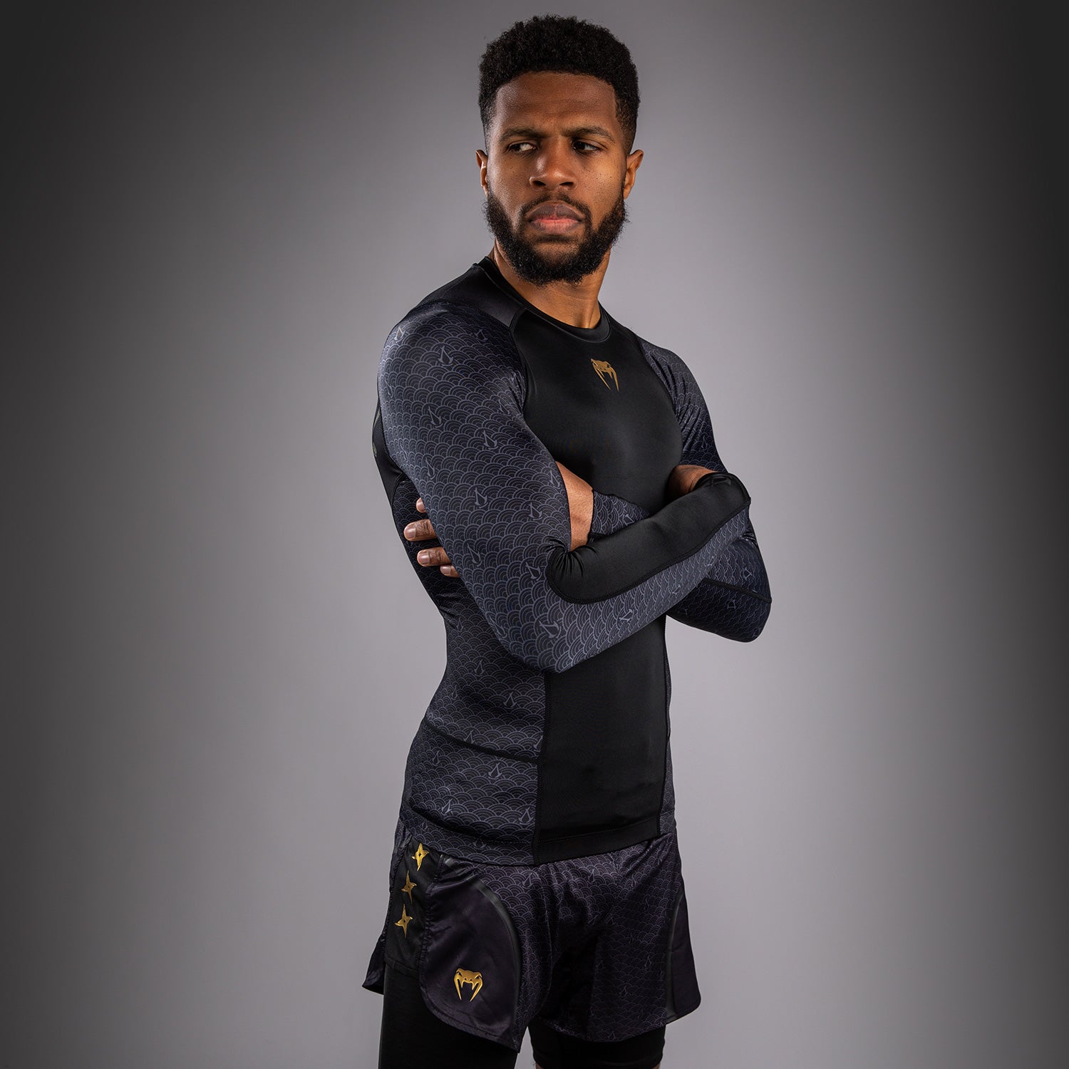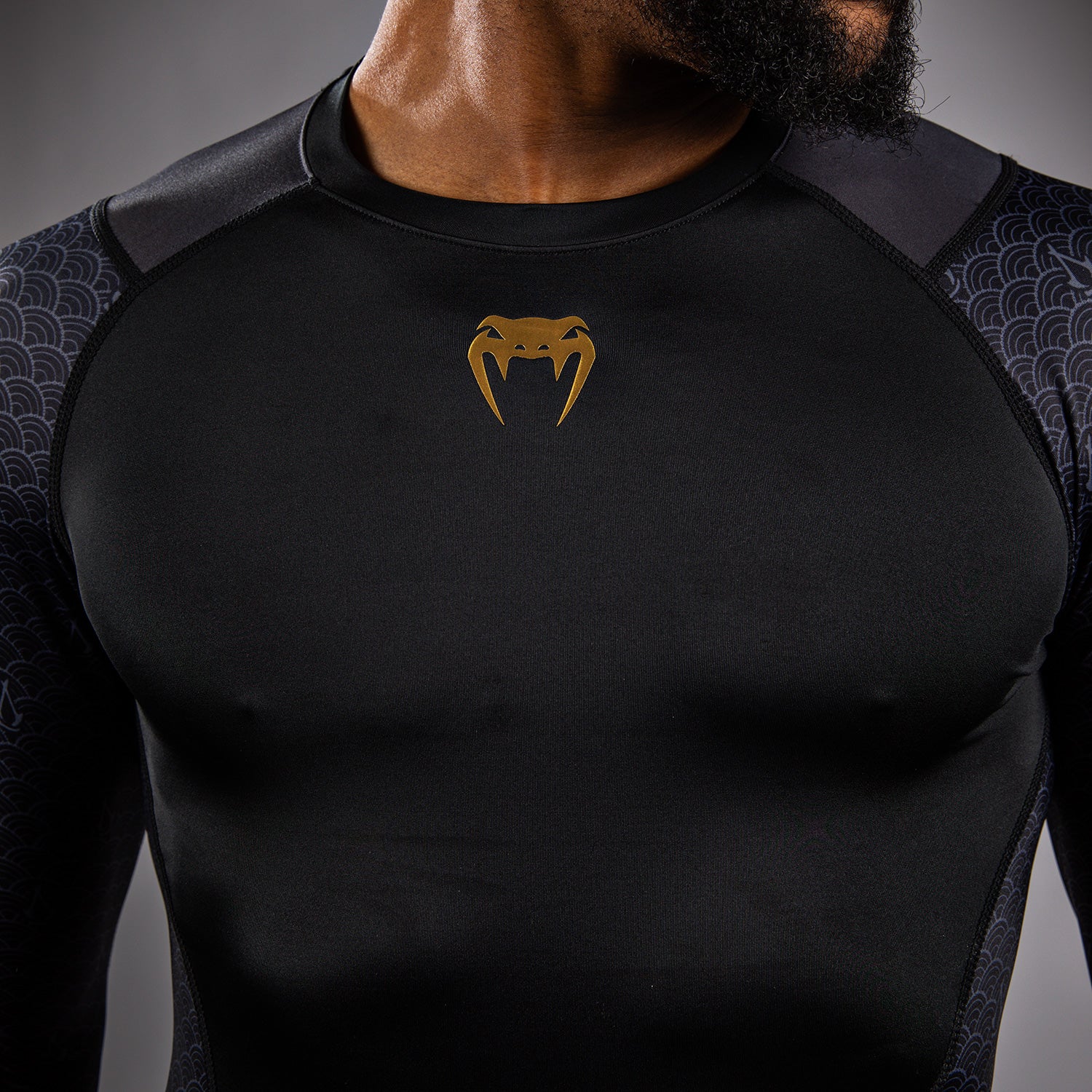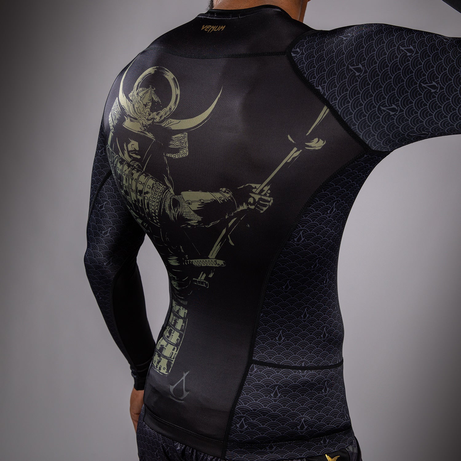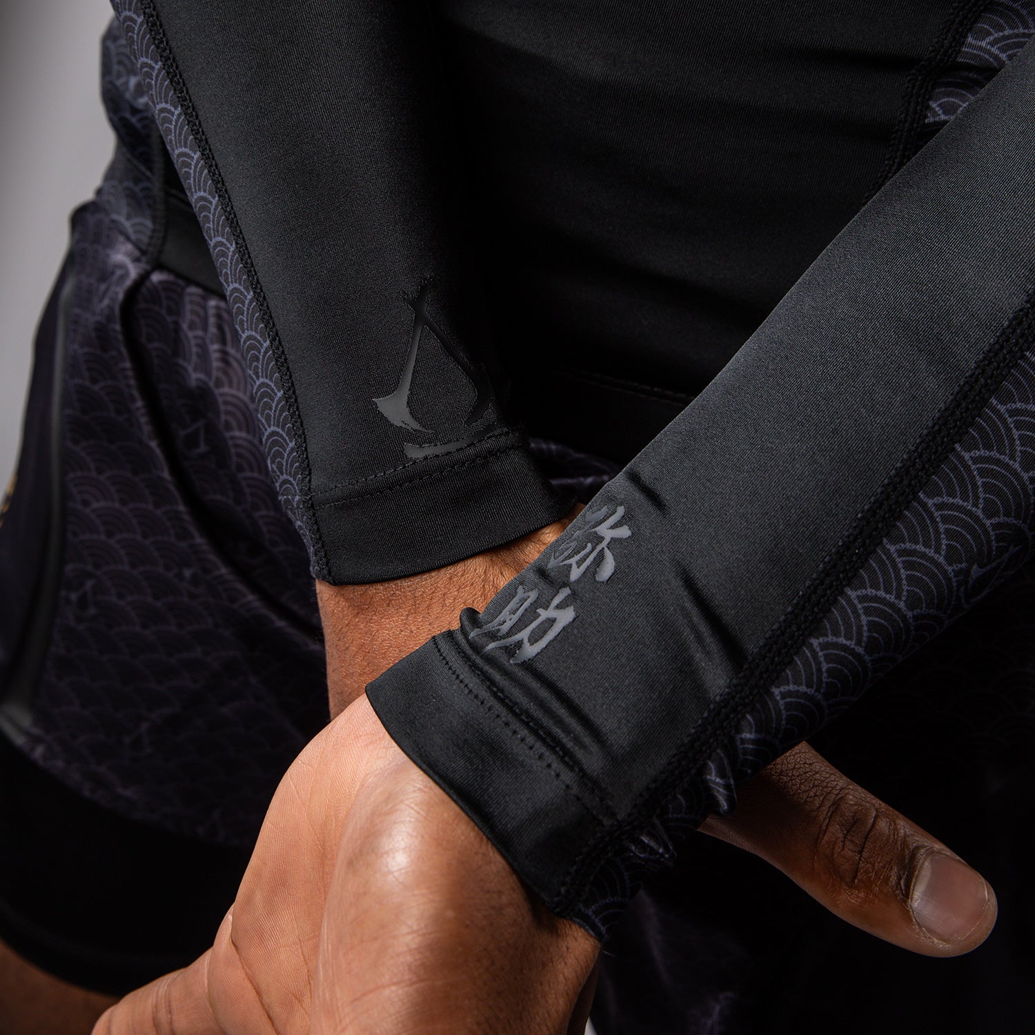 Der Venum x Assassin's Creed: Shadows Men's Long Sleeve Rashguard dient als zweite Haut, um sowohl Schutz vor Verletzungen als auch Bewegungsfreiheit beim Grappling zu bieten. Die Kompressionstechnologie des Rashguards unterstützt außerdem die Erholung der Muskeln.