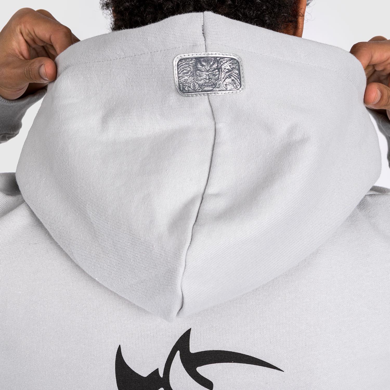 Auf der Kapuze ist ein silberner Metallaufnäher aufgestickt, der die Metallplatte des 1025-PS-Motors des Demon 170 nachahmt. Fans von Venum und Dodge werden auch das Demon 170-Logo, das Challenger SRT- und das Dodge x Venum-Logo auf der Rückseite des Hoodies zu schätzen wissen.